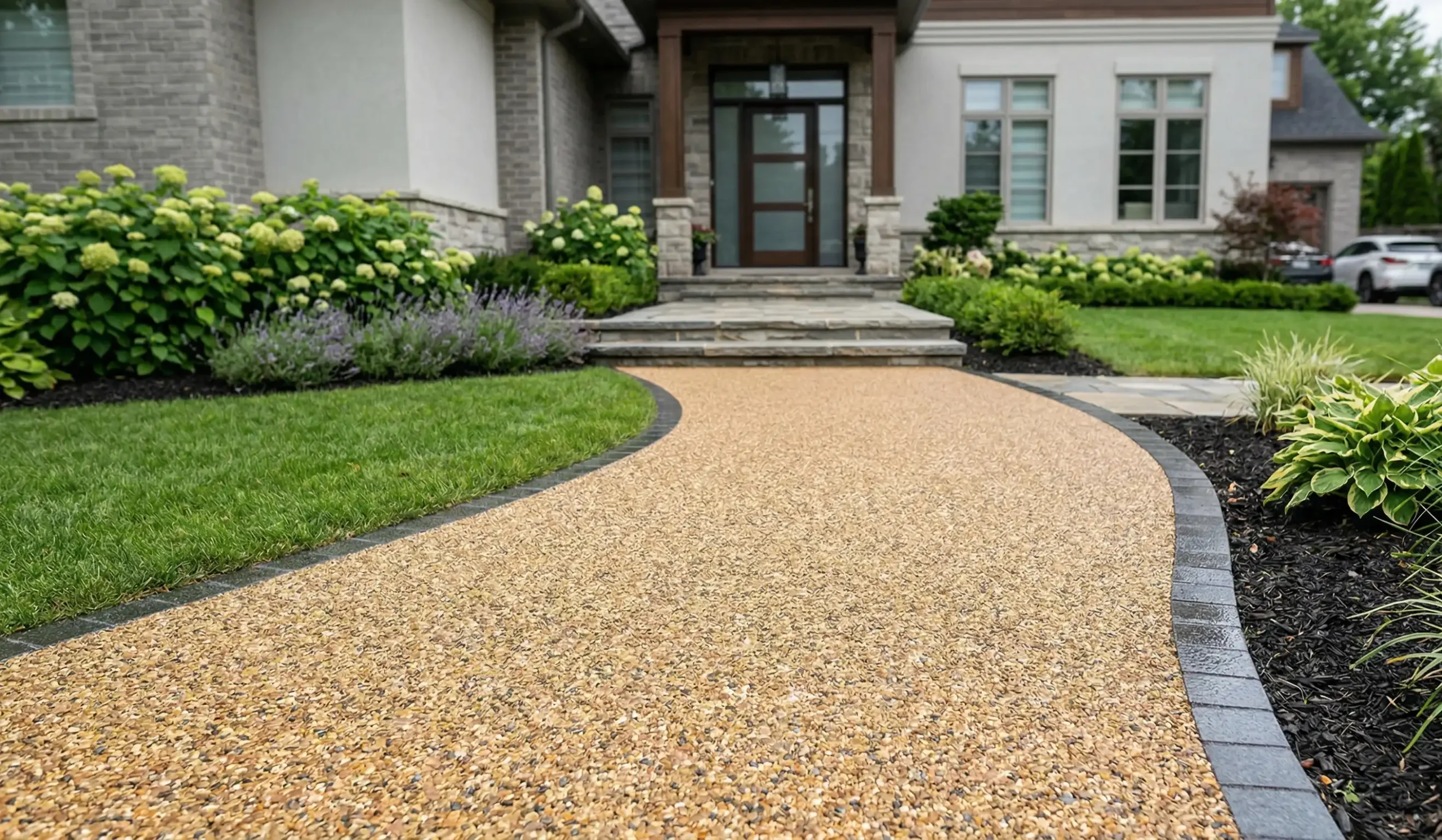 A smooth, permeable surface that delivers a clean, seamless finish with zero loose gravel. Highly customizable with various colour options and custom natural aggregate mixes to perfectly match your home. And it is AODA compliant, making it perfect for maximum accessibility!